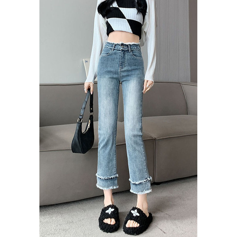 女性用ライトブルーレトロ多用途シガレットパイプローエッジストレートジーンズ2025新しいハイウエスト9点パンツ