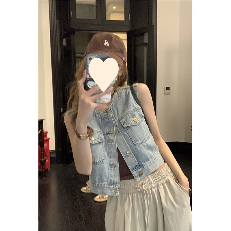 レトロショートデニムベストベストジャケット女性のための夏の 2025 新しいスタイルルーズノースリーブベストトップトレンディ