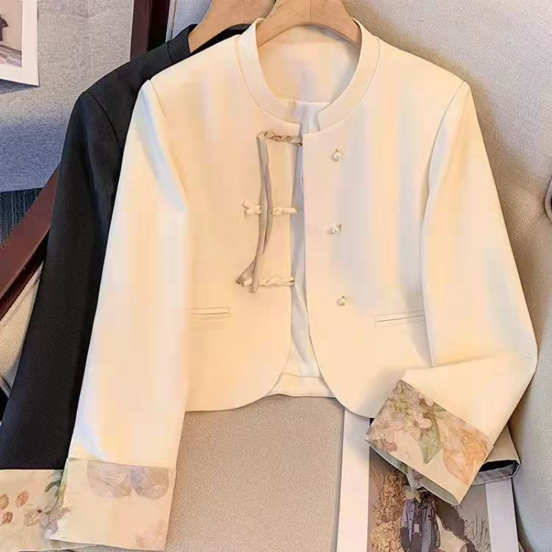 新しい中国風の国民風 2025 春の新しい女性のハイエンドのパーソナライズされた多用途の唐スーツボタンステッチ袖口ジャケット
