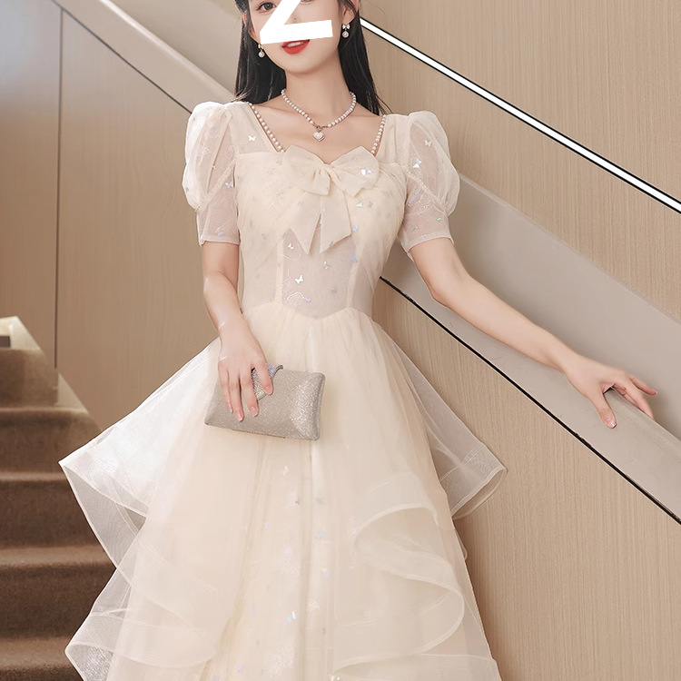 シャンパンイブニングドレスライト高級ニッチ誕生日ウェディングドレスプリンセスドレス成人式妖精新しいスタイルワンピース直販