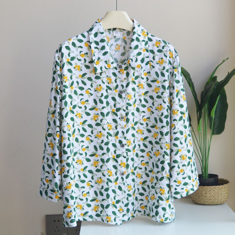 中高年女性の綿シルクシャツ、ルーズラペルボタンカーディガン、おばあちゃんのサマートップス、おばあちゃんの綿シルクシャツ