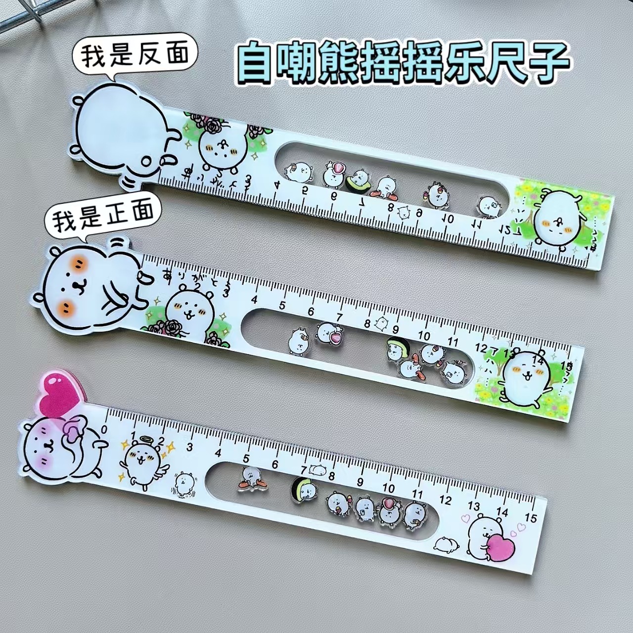 かわいい自嘲熊ロック物差し15cmアクリル直尺高颜値学習文房具小学生物差し