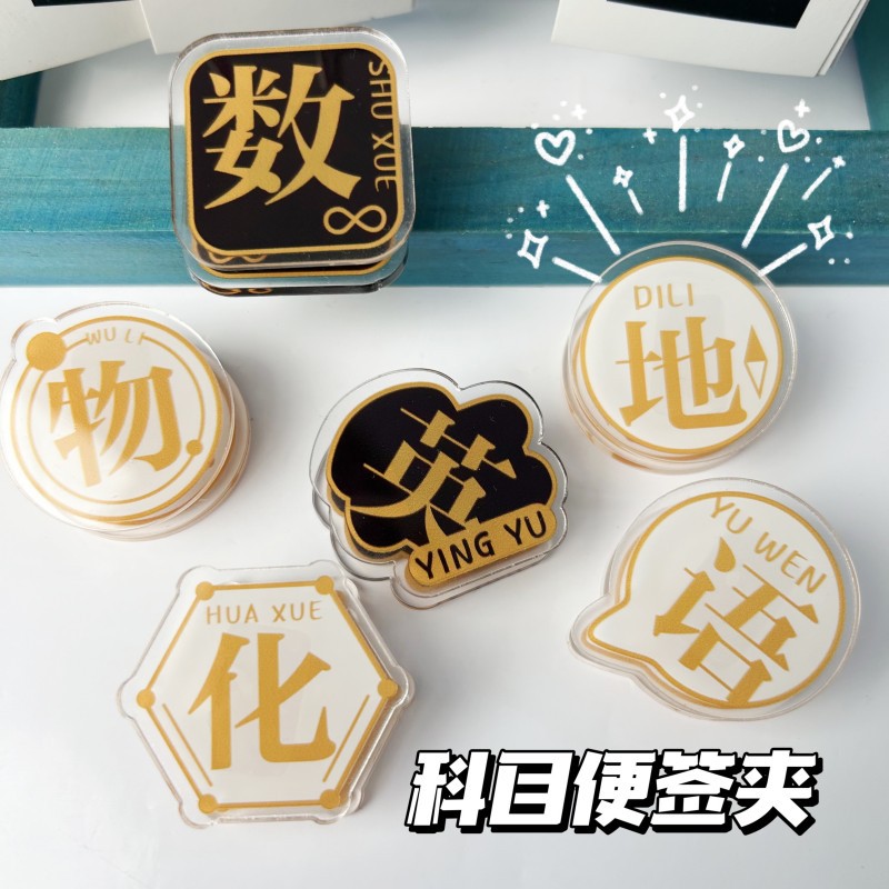 Ins風科目ppクリップアクリル便箋クリップ数学英語学生高颜値クリップ試巻ppクリップ手帳