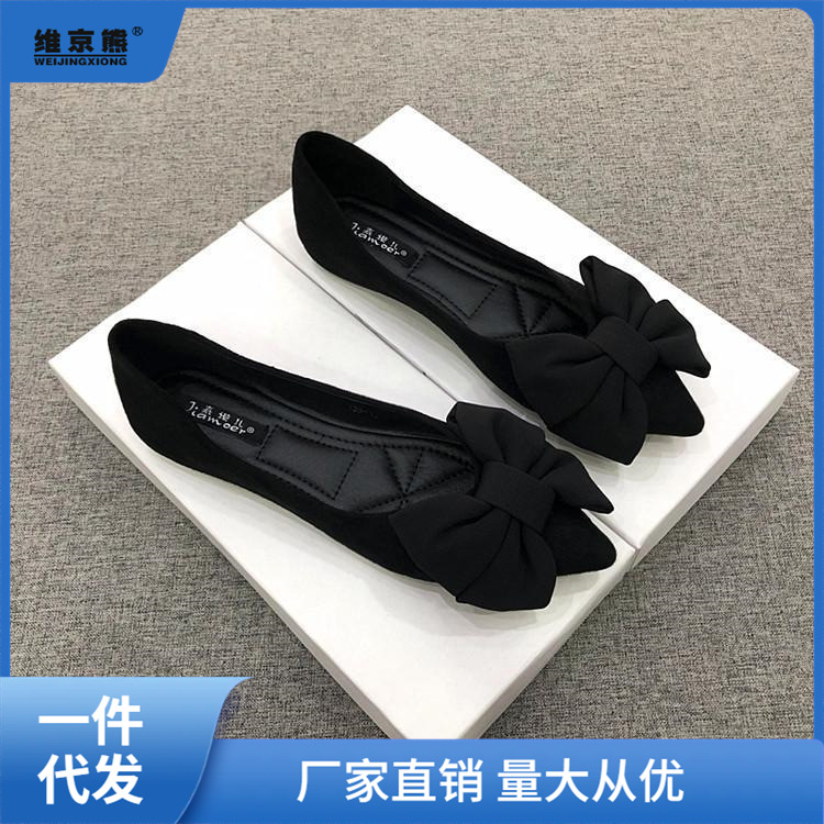 靴の女性2023年の新型の女性の先の靴のゴムの底の蝶結びの黒色の百合の仕事の楓