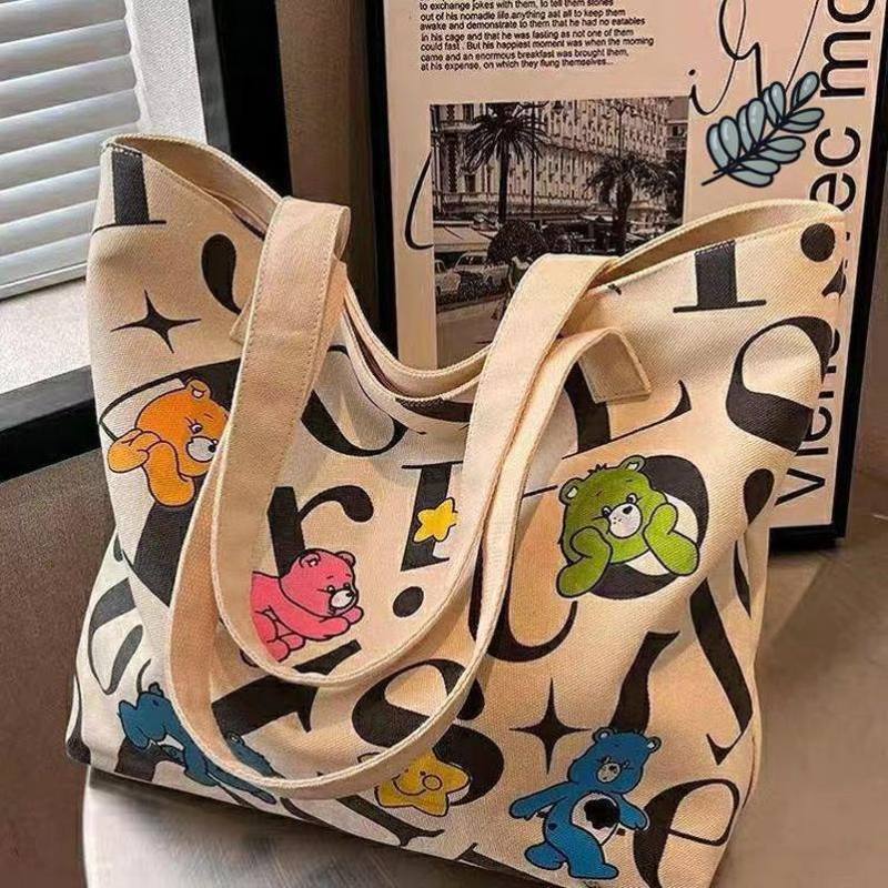 大容量キャンバスバッグレディース夏新作ファッションショルダーバッグ通勤トートバッグ漫画ハンドバッグマミーバッグ