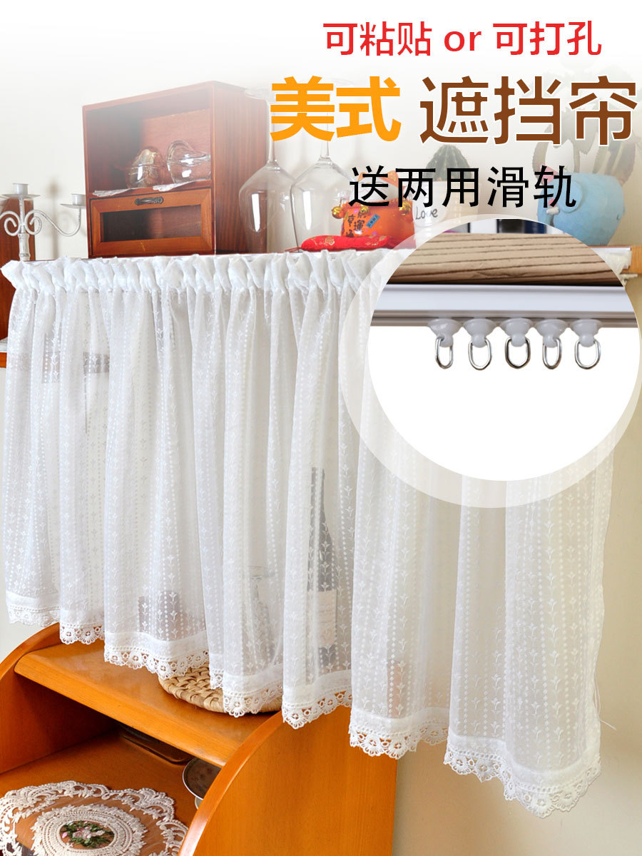 白いレースのカーテンはカーテンの滑りを遮ります。穴を開けないでフックを取り付けます。