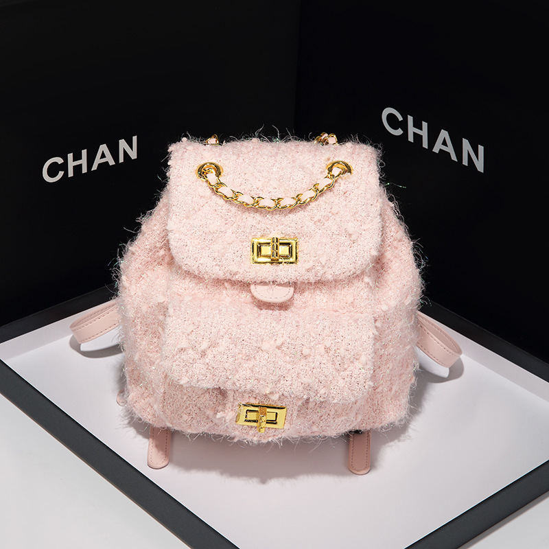 韓国版のラシャのカバンの女性の春夏の2024の新型の小さい大衆の設計のチェーンのリュックサックの多機能の肩のハンドバッグ