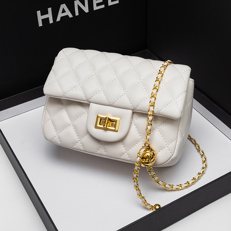 ファッションの金のボールのチェーンの包みの女性の2023秋冬の新型の百合の韓国版の菱の格の女性のカバンのシングル肩の斜め掛けの小さい方のカバン