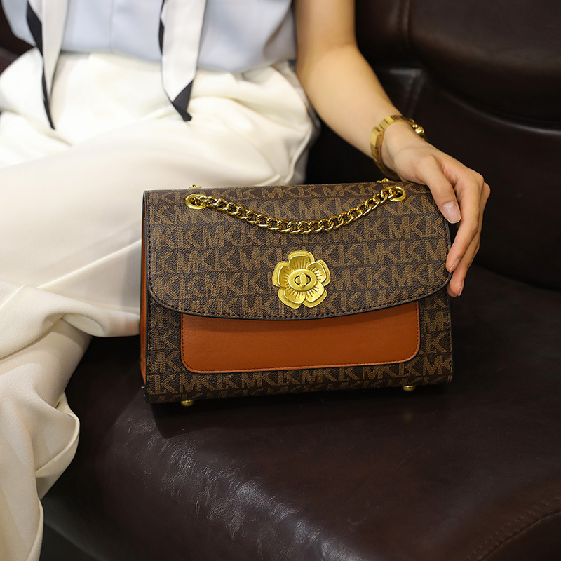 質感ツバキの花の鎖は小さい方を掛けて夏の新型の2023韓国版の潮の復古のプリントのチェーンを包んで肩を斜めに掛けます。