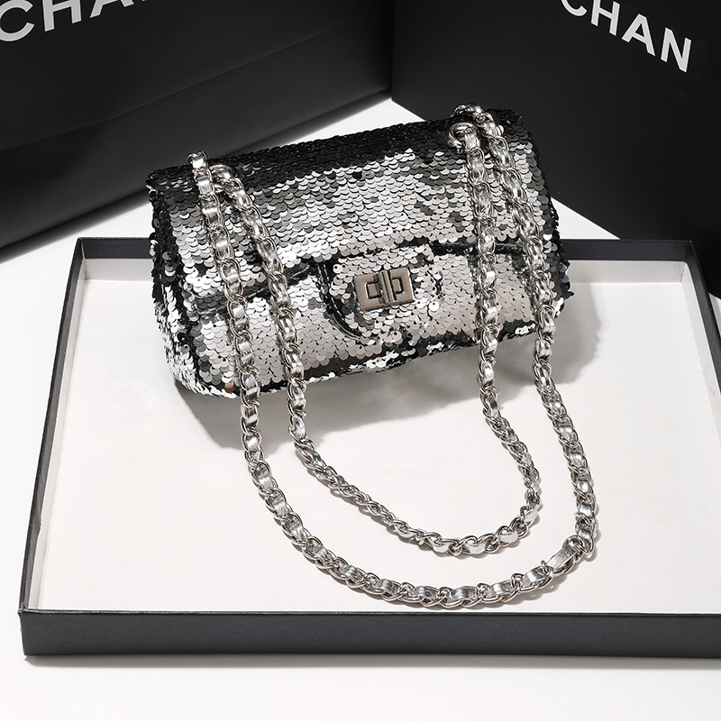 日本レーザーバッグ2023新型ファッション女性バッグスパンコール幾何学菱格バッグトレンドシングルショルダーバッグ