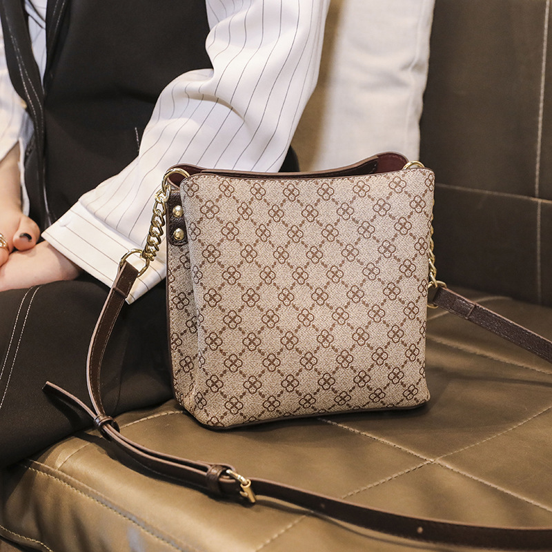 2023春夏新作韓国版レトロプリントバケツバッグ女性シングル肩脇下バッグ大容量ショルダーバッグ
