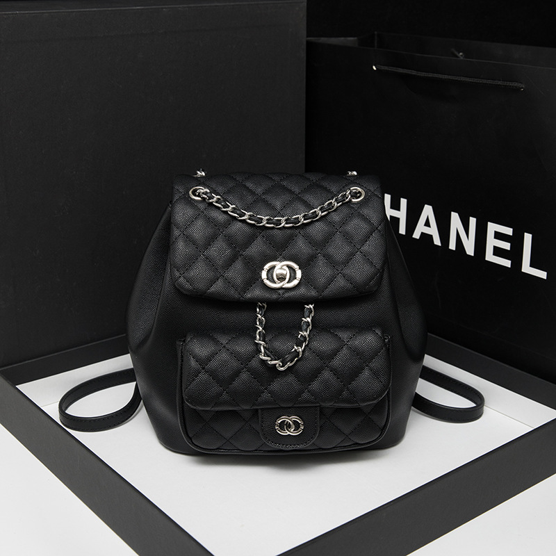 ライトラグジュアリーな新しい韓国スタイルの小さな香りの菱形キャビアバックパックテクスチャチェーンクロスボディカジュアルスタイルショルダーバッグ