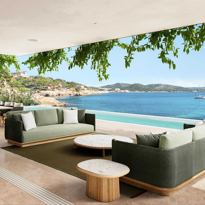 北欧アウトドアレジャーソファ中庭ヴィラチークホテルB&Bテラス防水日焼け止め防腐無垢材家具