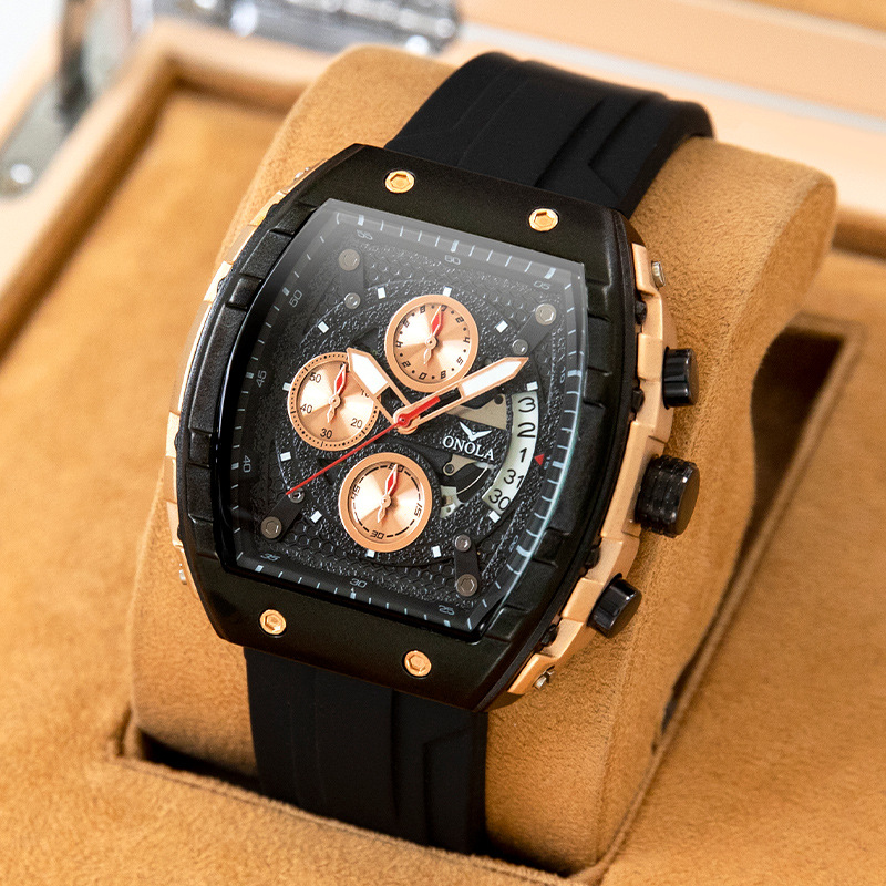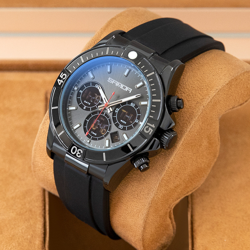 腕時計男性ファッション2024新型トレンドシリコンテープ三眼六針クールプレゼント中学校生放送起爆金