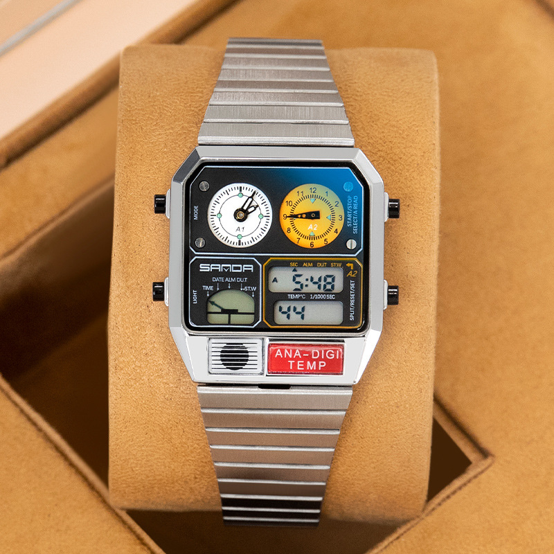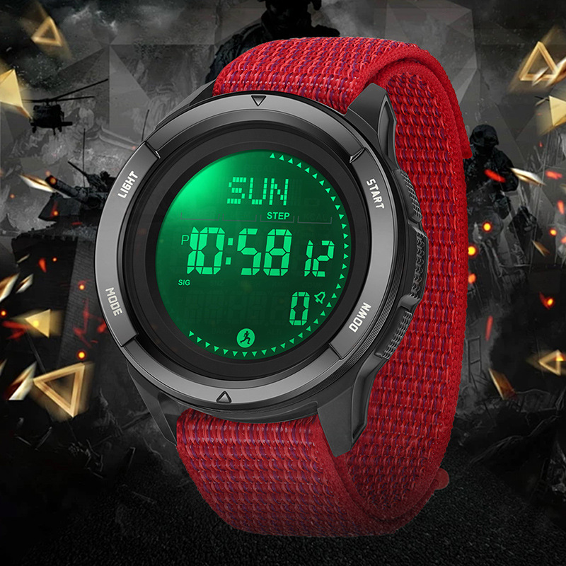 三達クロスボーダー爆型電子腕時計多機能羅針盤運動計歩表登山水泳学生電子時計