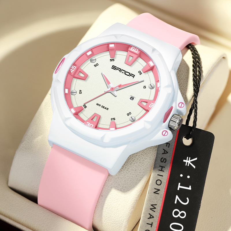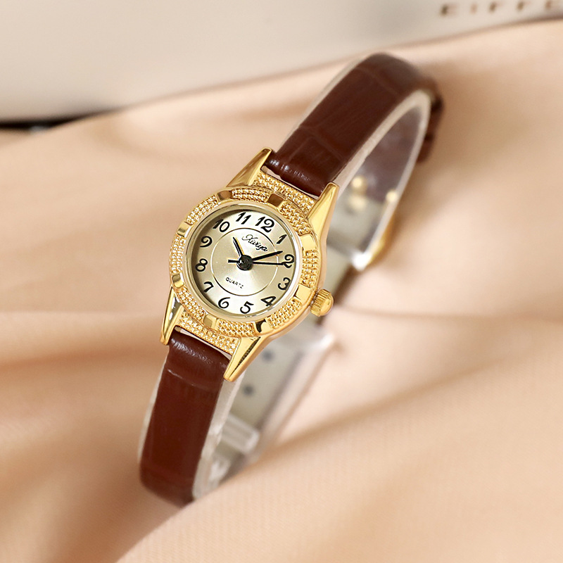 腕時計の女性輸入石英ムーブメントのファッション的な本物のベルト2024の新型の小さい方の砂糖の軽い豪華な生放送の爆発的な高級