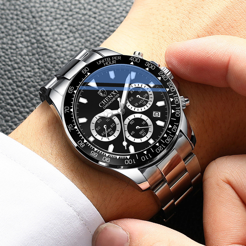 専門店の正規品腕時計男性ファッション鋼帯偽三眼六針全自動非機械時計潮流大文字板プレゼント