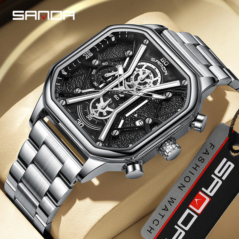 三達の新型の熱い販売のベルトの男性の石英の腕時計のファッションのカジュアルな四角形のカレンダーの夜光の腕時計の1件の卸売り