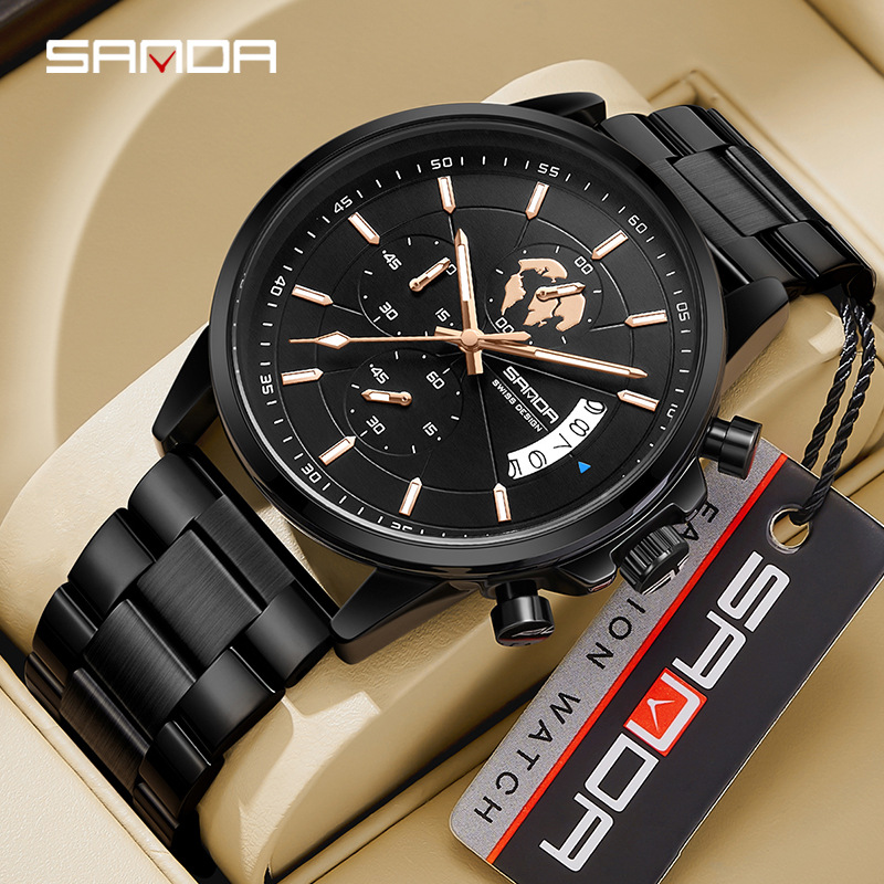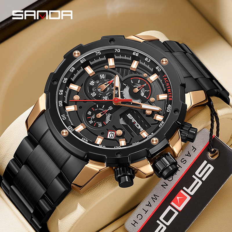 専門店の正規品の腕時計の男性の防水の夜光の多機能は爆発金のファッションの経典の鋼帯の輸入の石英のムーブメントを生放送します。