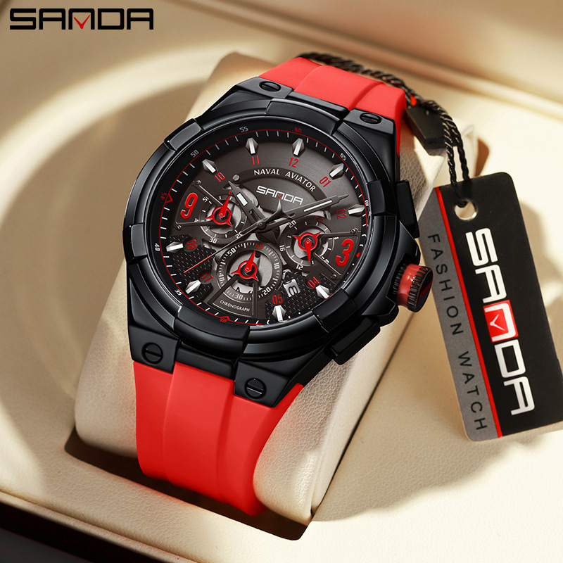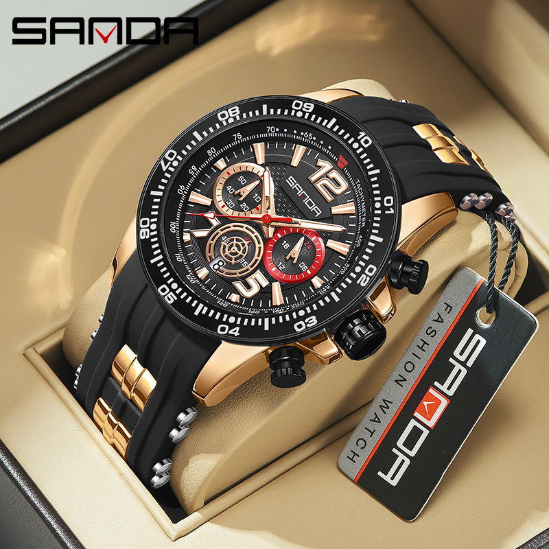 腕時計男性用スポーツクォーツ時計ファッションクールシリコーンテープカレンダーシンプル三眼六針防水2024新型