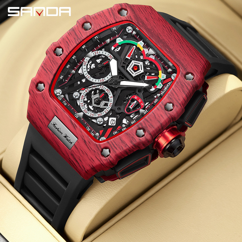 腕時計の男性の透かし彫りのクールでシンプルなアウトドアスポーツのシリコンテープの生放送の爆発的な防水の夜の光の2024の新しい大きいブランド