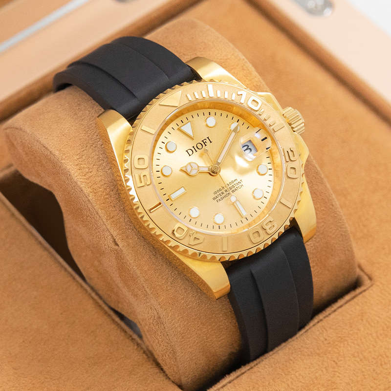 腕時計の男性の金のヨットの全自動機械の時計の専門店の規格品は爆発的な金の2024の新しい夜光の防水のシリカゲルを生放送します。