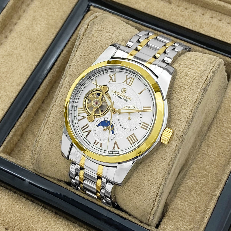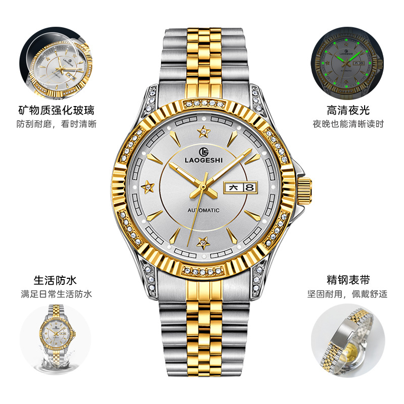 LAOGESHI腕時計男全自動機械時計防水ファッションビジネスカレンダーに夜光鋼帯時計を入れる