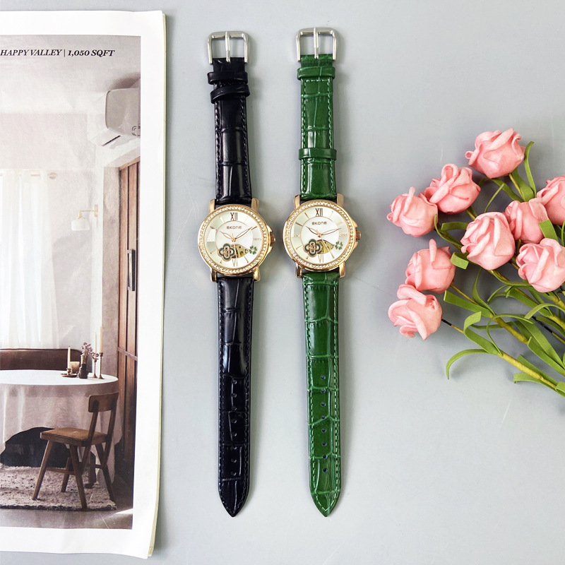 腕時計の女性の全自動機械の芯の孔雀の緑はドリルの小さいサツマイモの爆発金を入れます。