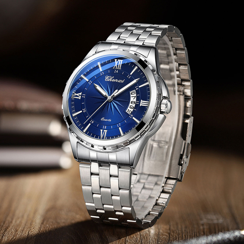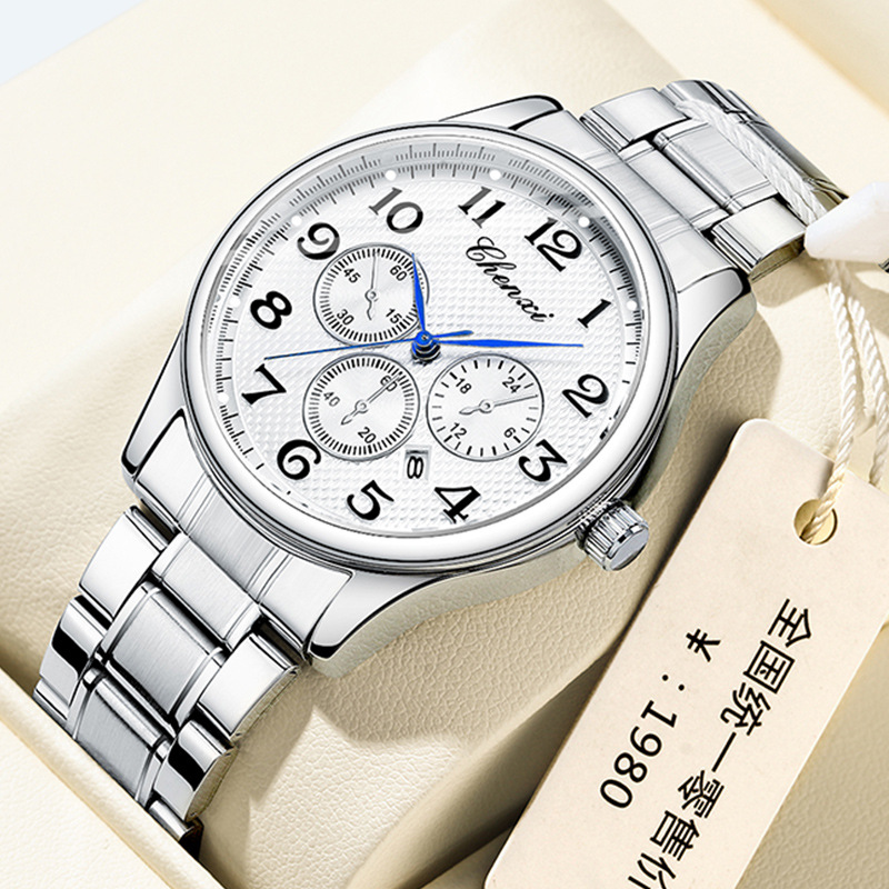 カレンダー付きステンレススチール時計メンズロシアライブブロードキャストホットスタイル発見スポット防水クォーツパーソナライズされたビジネストレンド