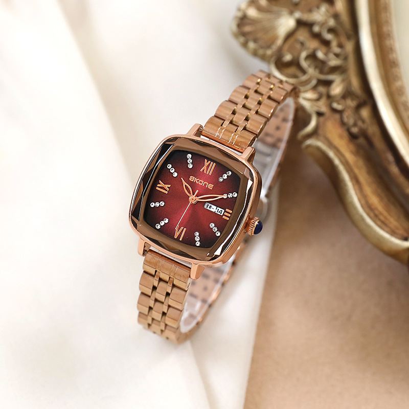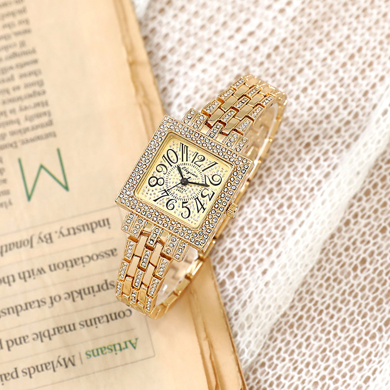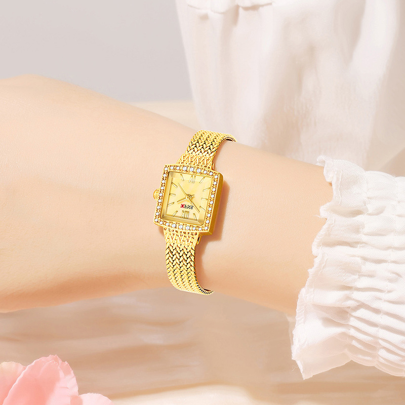 専門店の規格品の新商品の越境腕時計の女性の復古の四角形の網は石英の時計の防水の軽い豪華なダイヤモンドの腕時計の卸売りを持ちます。