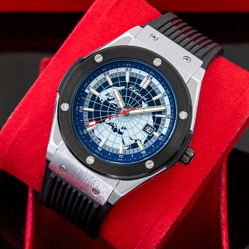 専門店の爆金朝セイ男性腕時計リベット地図ファッションカレンダー夜光シリコンテープ生放送クロスボーダー潮流表