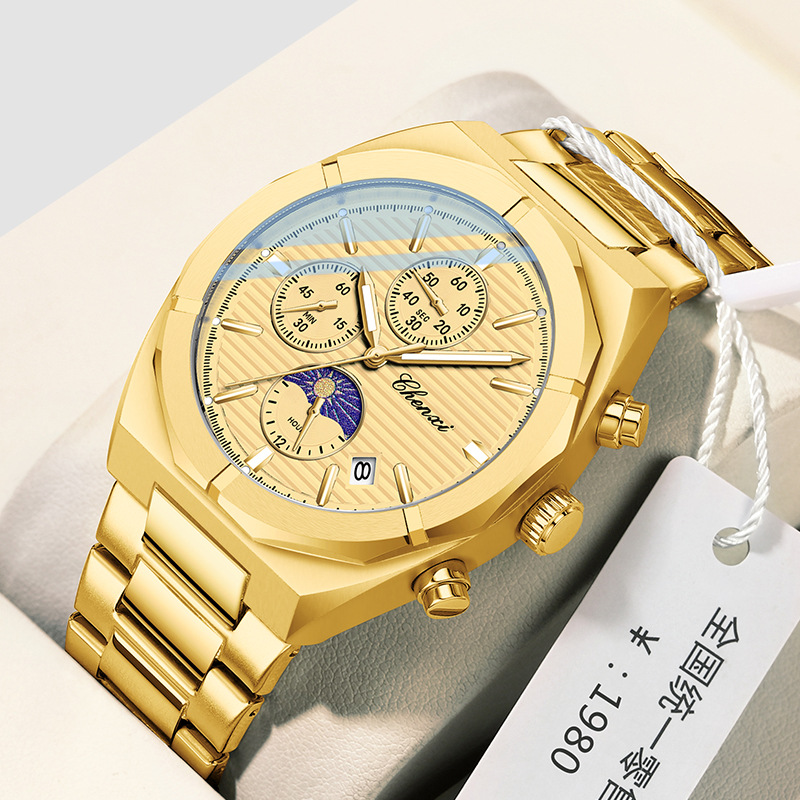 腕時計男性防水夜光鋼帯ビジネス2024新型生放送爆金指針石英時計日月星時計
