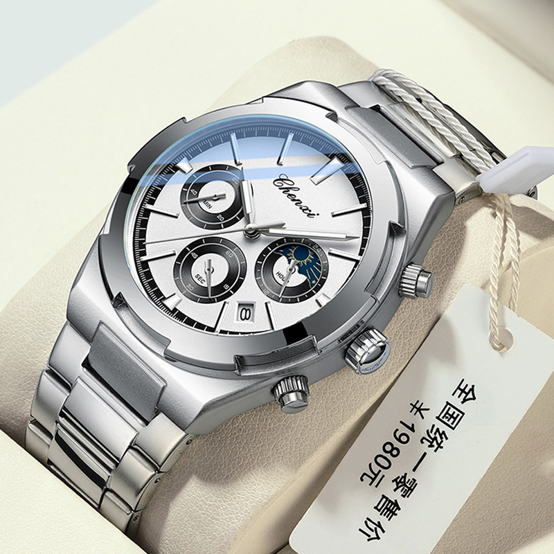 公式正規品腕時計メンズ多機能カレンダー月相タイミングファッションスチールベルト夜光防水2024新シンプル