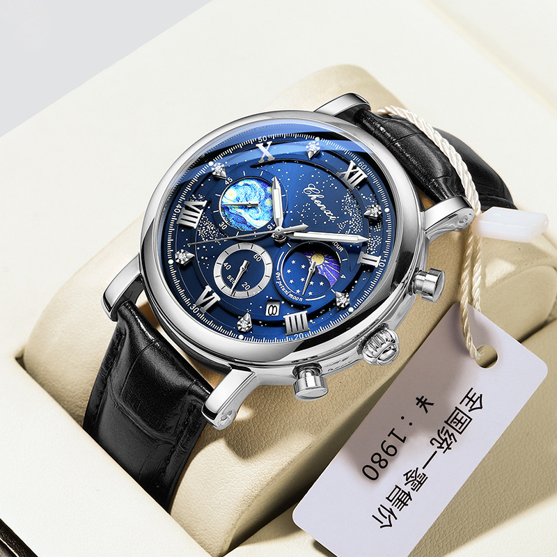 腕時計の男性の多機能の日月星の針の超強力な夜光の防水は爆発的なスポーツを生放送して彼氏の2024を送ります。