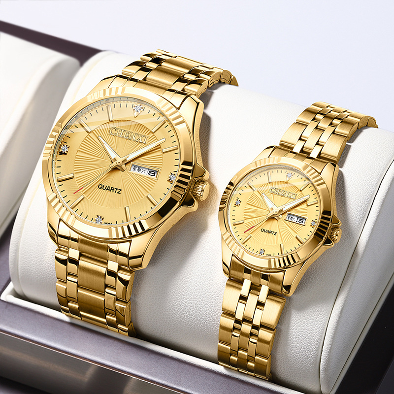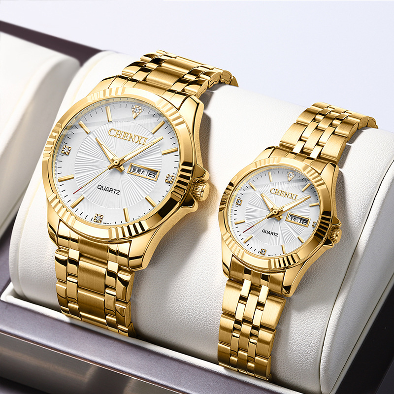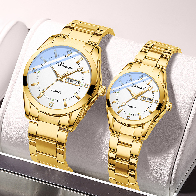 腕時計カップルのダブルカレンダークロスボーダー起爆鋼帯メーカー卸売りステンレスビジネス防水夜光ペア