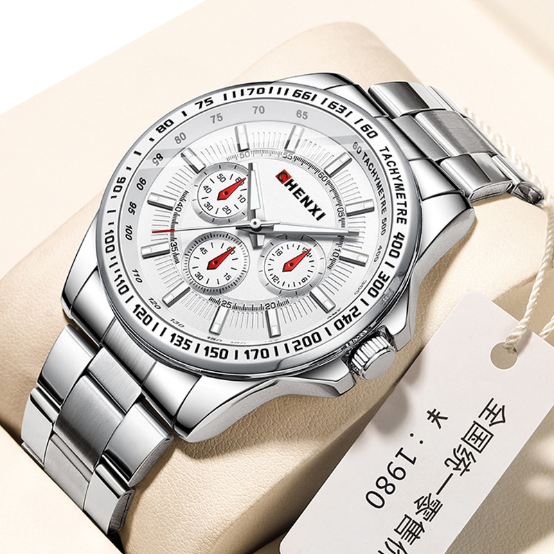 朝セイ2024新型起爆ファッション鋼帯男性腕時計防水夜光対外貿易メーカー卸売り流行三眼