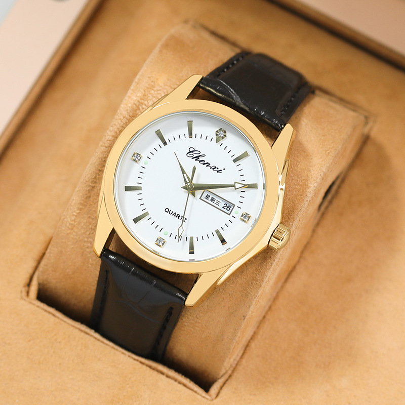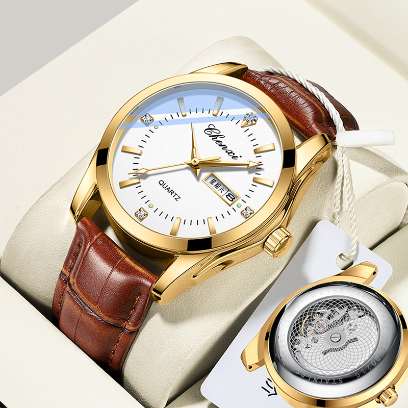 腕時計男性モデル真皮夜光防水ダブルカレンダー2024年新型生放送起爆ブランドファッションシンプル