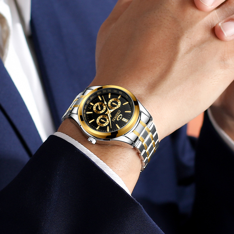 公式規格品ファッション鋼帯男性腕時計防水夜光対外貿易小サツマイモ爆金ビジネス多機能