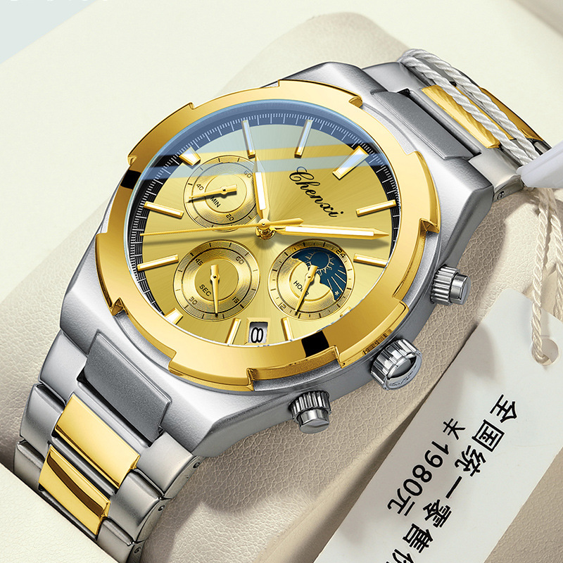 専門店の男性時計多機能腕時計カレンダー月相時間男性時計鋼帯夜光防水生放送