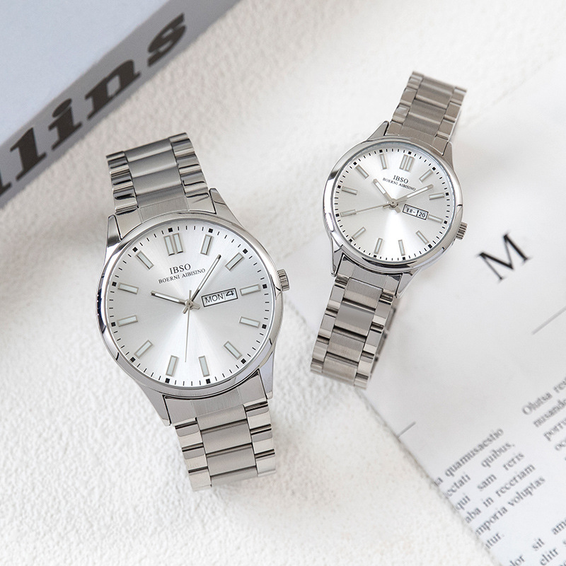 専門店の腕時計のカップルの金の鋼帯の双カレンダーの2024の新型の防水の夜光の軽豪華な小さい大衆のビジネスは簡単で気前がいいです。