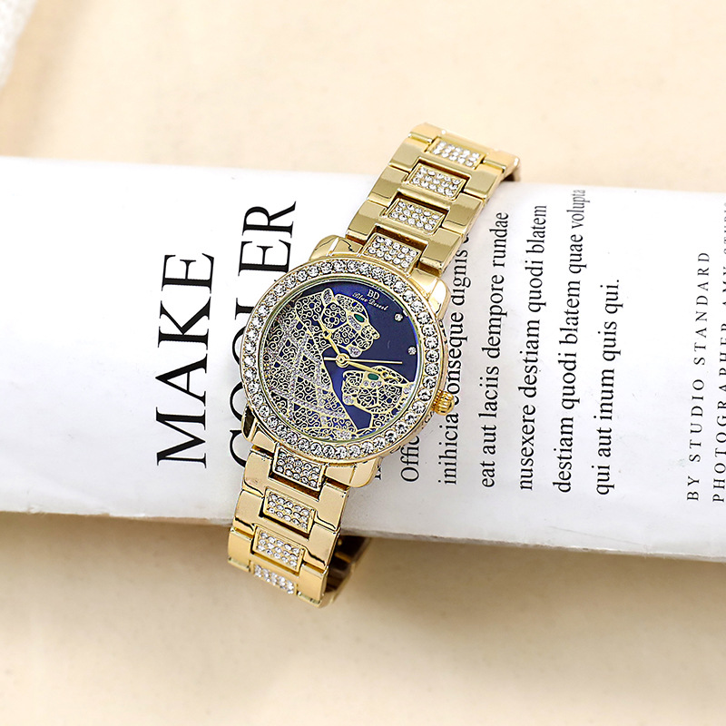 2024ブランドの新型豹は、目を奪われた華麗で繊細で優雅な女性の金色の腕時計の対外貿易に輝いている