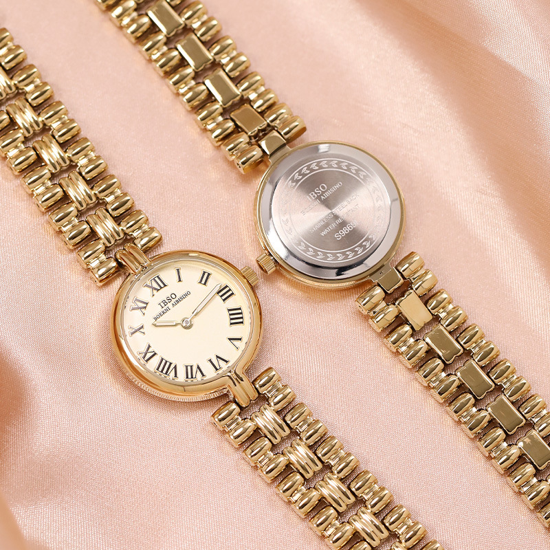 公式正規品腕時計レディースレトロローマファッションカジュアル金メッキヴィンセント系防水夜光スイス鋼帯