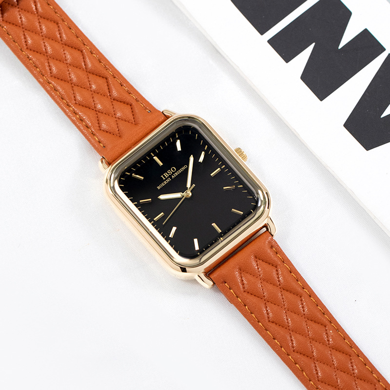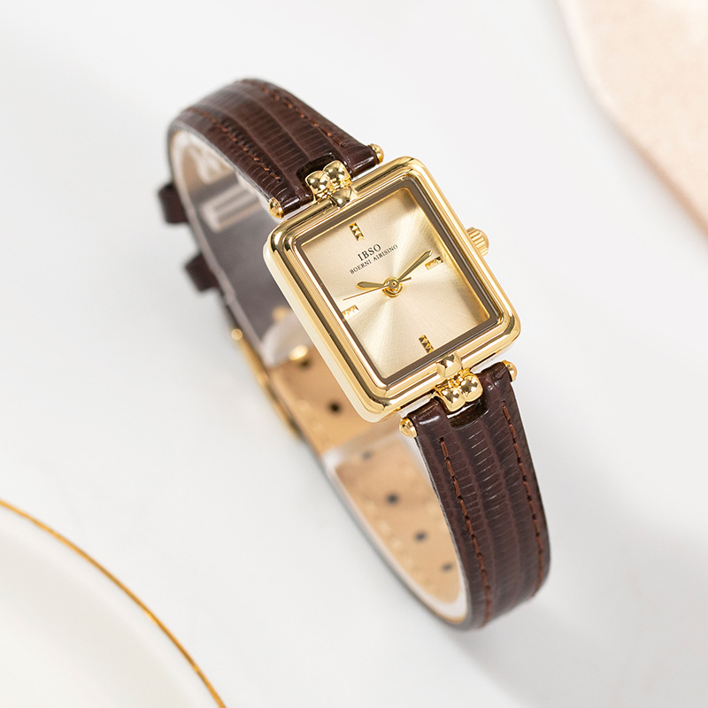 公式の正規品の腕時計の女性の金の2024年の新型のファッションの小さい大衆の大きい文字板の本革の四角形