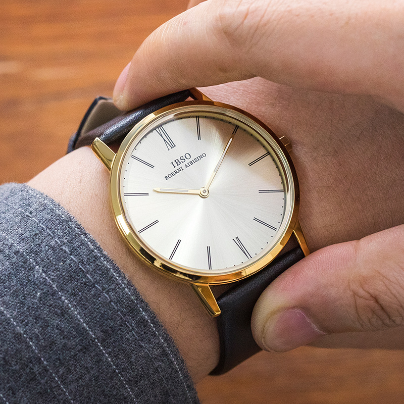 公式正規品2024年新作腕時計男性クォーツ時計超薄型シンプル本革高颜値学生プレゼント