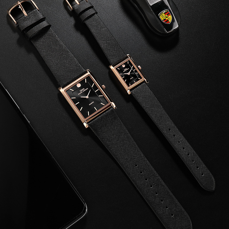 IBSOの正方形のカップルの腕時計の防水のファッションの潮流の大気は簡単で超薄い男性の時計の女性の金の2024新型の本革です。