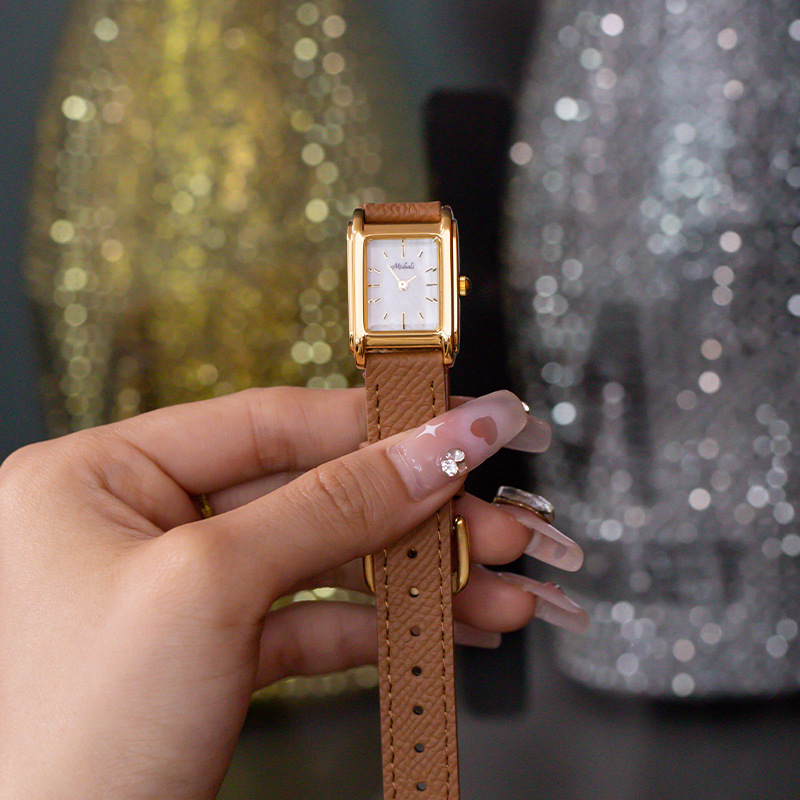小さな四角の砂糖の女性の時計の新型の本物のベルトの女性のファッションのシンプルで精巧な小さいサツマイモの博主は腕を推薦します。