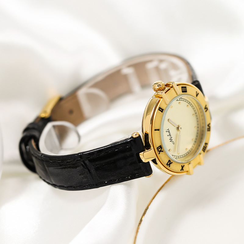 ヨーロッパのレトロでシンプルな超薄気質の金時計の真のベルトの腕時計の女性のブランドの高品質の女性のファッションの防水の女性