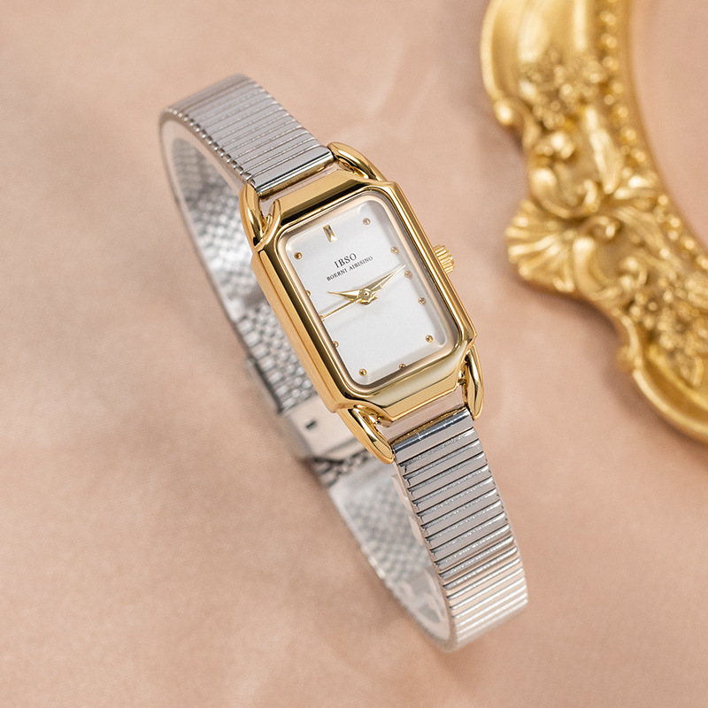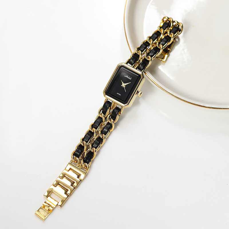 長方形の腕時計の女性のベルトのシンプルなファッションの潮流は復古の防水の大気の女性の石英の腕時計を生放送します。