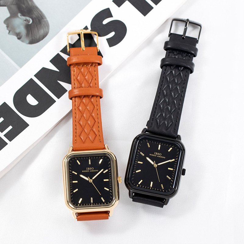 Ibso超薄方形腕時計男性真ベルト防水ファッショントレンドシンプル非機械ローマレトロ男性時計