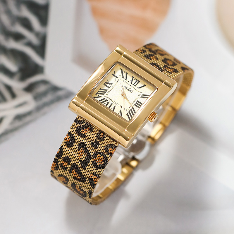ヒョウ柄の腕時計の女性の防水鋼帯の大きい文字板のネットの赤いファッションの生放送の潮流の新型の防水の復古の個性の女性の時計